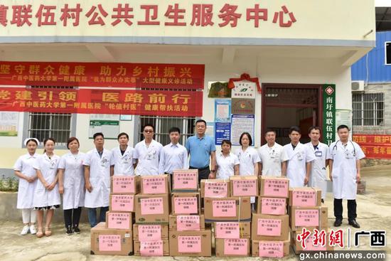 中新网广西新闻5月18日电 近日,广西中医药大学第一附属医院派出相关职能科室负责人、专科专家团队,到定点帮扶村联伍村举行“轮值村医”健康帮扶助力乡村振兴大型义诊暨“我为群众办实事”实践活动,还向南圩镇联伍村卫生服务中心捐献了一批基础医用耗材和药品。