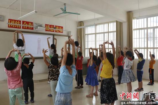 图为带领儿童打八段锦。