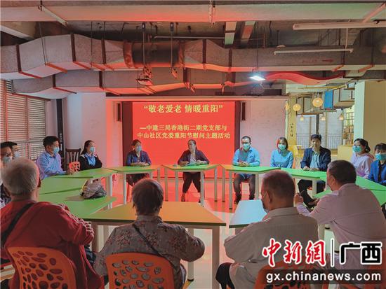 中新网广西新闻10月15日电(冯银)10月13日下午,中建三局二公司香港街二期党支部与中山社区党委联合开展重阳节主题慰问活动,为其送上节日祝福的同时切实把党的声音和关怀及时传递给他们。