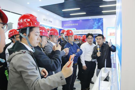 现场观摩团来到项目智慧展厅了解项目BIM+VR,BIM+AR,BIM+全息投影,轻量化BIM模型交底及四新技术等应用情况。