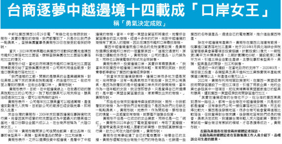 菲律宾商报:台商逐梦中越边境十四载成“口岸女王”