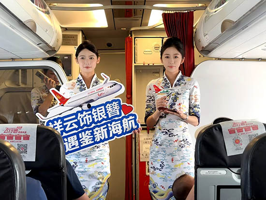 与此同时,在万米高空上,北部湾航空当天在GX8873南宁-襄阳-青岛航班上开展“祥云饰银簪 遇鉴新海航”主题航班活动,与旅客分享更换新发簪的喜悦,向旅客传递“海天祥云”制服整体内涵。