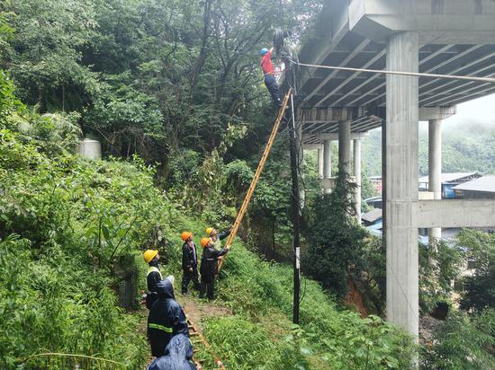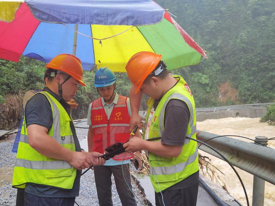 6月17日12时,资源县将暴雨橙色预警信号提升为红色预警。6月19日11时21分,资源县车田乡粗石村和龙塘村128户宽带用户受到影响,8个基站退服。中国电信资源分公司组织抢修队伍冒雨到现场进行故障定位检测,发现在车田乡粗石村路口的主干光缆被泥石流压断,立即进行抢修,熔接光缆,于当日16时8分抢通光缆。