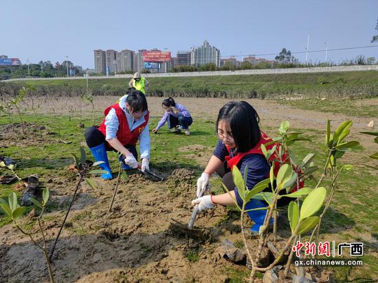 中新网广西新闻3月20日电(熊明义 莫丽茵)在第四十六个植树节来临之际,工行防城港分行3月11日组织青年志愿服务队参加“植此青绿 共建绿美港城”文明实践志愿服务活动,自觉参与到海洋生态及红树林保护工作中,充分发挥青年志愿者在生态建设中的生力军和突击队作用,更好地促进海洋、红树林生态系统的良性发展。