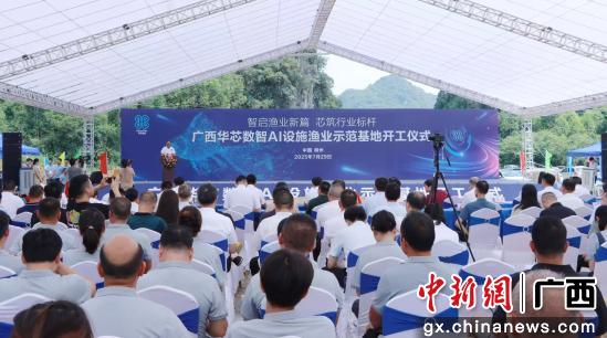 中新网广西新闻7月30日电(韦莹芸 覃鹏)广西华芯数智AI设施渔业示范基地29日在广西柳州市柳江区成团镇矮山屯开工。