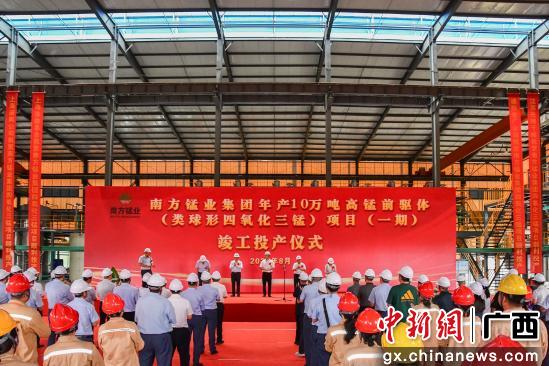 中新网广西新闻8月22日电(杨陈 吴焯)8月20日,南方锰业集团大新锰矿分公司年产30万吨锰锭熔炼及节能环保技改项目、崇左分公司年产10万吨高锰前驱体(类球形四氧化三锰)项目(一期)两大重点项目正式竣工投产,标志着南方锰业集团在锰产业高端化、绿色化、智能化转型中迈出坚实步伐,为崇左市锰产业高质量发展注入新动力。