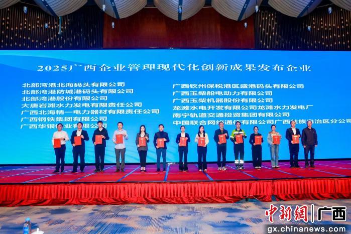 广西企业与企业家联合会副会长蒙良发布2025广西企业管理现代化创新成果,广西58家企业集中发布102个企业管理现代化创新成果。其中,广西柳工机械股份有限公司质量总监张淑梅、桂林南药股份有限公司工会主席谢丽、中国铁路南宁局集团有限公司经营开发部高级经济师杨爱珍等3家企业代表依次上台作典型发布,其余55家企业作书面发布。发布企业获颁发《广西企业管理现代化创新成果发布证书》。