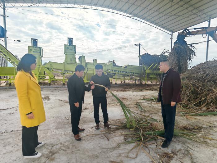 图为相关负责人到分布式机收点工作。广农糖业 供图