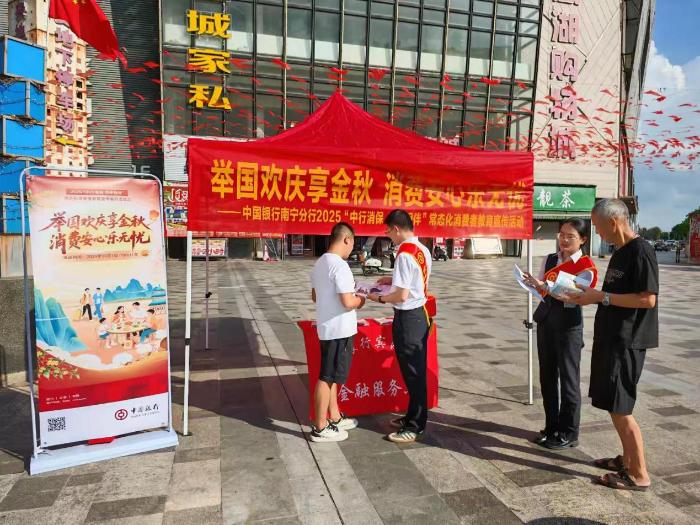 中国银行广西区分行近日在广西开展“消费安心乐无忧”专项教育宣传活动,全体员工同参与,线上线下相呼应,以网点厅堂为辐射源,围绕理性消费、合规借贷核心要点开展全方位宣传,护航金秋消费季。
