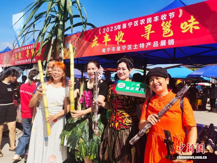 9月23日,在广西南宁市邕宁区康岭农副产品交易市场,民众开展丰富多彩的趣味活动,庆祝第八个中国农民丰收节。