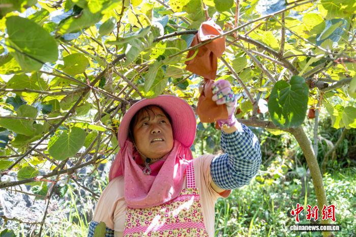 近日,广西百色市田林县浪平镇塘合村的猕猴桃迎来丰收。在塘合村的猕猴桃种植基地里,采摘工作正如火如荼地进行。