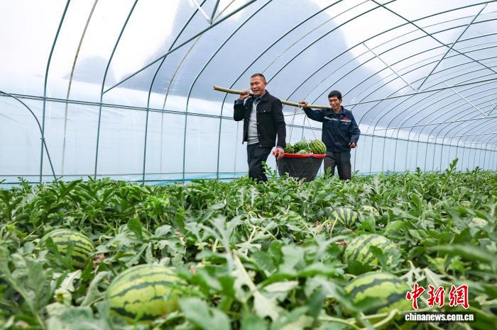 连日来,当地种植的大棚西瓜进入成熟采摘期,瓜农们抢抓农时加紧采收,在新春佳节前发往全国各地,错峰上市抢占春节市场。