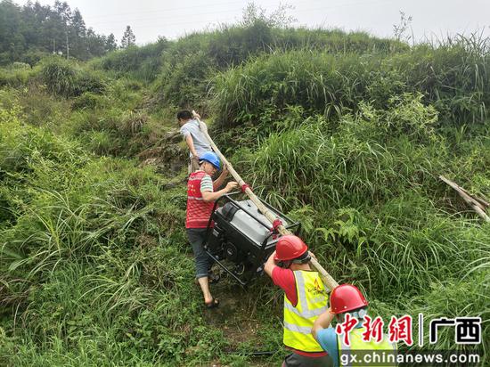 受融水县荣地电站开关起火影响,造成融水县安太乡、洞头镇停电,导致安太乡尧良基站、安太三合基站、洞头甲朵基站等多基站出现市电停电告警。抢修人员第一时间前往基站发电,大家克服暴雨、塌方等困难,齐心协力肩抗发电机、手抬油料等物资在湿滑的泥泞地上艰难前行,全力奔赴在恢复基站供电的抢修工作中。