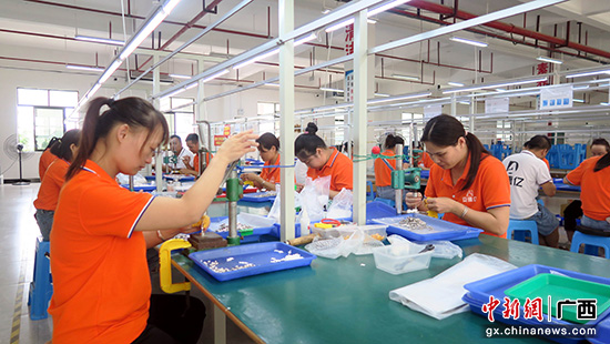 近日,在广西安德亿电子科技有限公司粤桂协作就业帮扶车间里,务工人员在忙碌工作。为帮助群众家门口就近就业增收,广西百色市田阳区在巩固脱贫与乡村振兴进程中不断加大粤桂协作就业帮扶车间建设力度,使之成为群众增收“助推器”。
