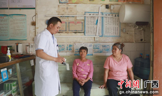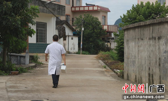 中新网广西新闻7月26日电(康彭静 万佳敏)夏日午后,在广西荔浦市双江镇太和村,何家贵顶着太阳,挎着小药箱,来到乡亲家中复诊处理伤口,量血压、血糖。从退伍回乡走上乡村医生的岗位以来,何家贵走门串户,做乡亲身边的“120”。