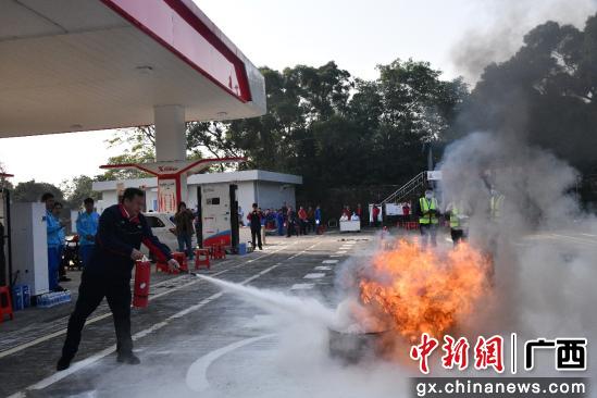 摘要提示:12月3日至4日,由广西成品油行业协会主办、中石安环科技(广西)有限公司承办的首届广西加能站技能比武竞赛,在广西安全仿真实训基地举办。李亭姗 摄 此次比武竞赛还现场展示中国石化广西石油分公司自主研发的“易消盾”水基型灭火器使用效果。