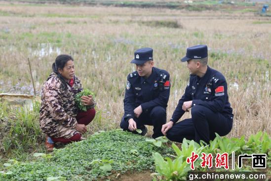 摘要提示:2月8日,广西崇左边境管理支队那艾边境派出所移民管理警察深入抵边村屯,助力边民春耕生产,为留守老人排忧解难。(梁鹏)民警助力春耕民警在田间与村民交流。