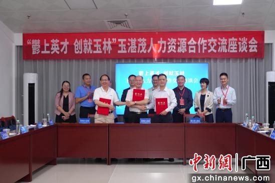 在区域协同发展方面,主办方创新举办玉湛茂人力资源合作交流座谈会。会上,玉林市人社局与湛江市人社局、茂名市人社局围绕“生态协同与资源共享、人才交流与人才引进、技能培训与人才培养、劳务品牌培育与推广、劳务协作与就业促进、人力资源服务交流与合作”六大领域,签署《人力资源服务产业园合作协议》,构建跨区域人力资源协作机制。30家来自三市重点人力资源机构代表见证这一历史性时刻,标志着“玉湛茂”人力资源一体化建设迈出实质性步伐。