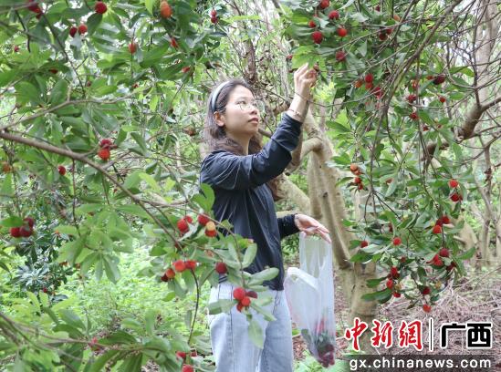 中新网广西新闻5月26日电(韦新娜 周宏山 韦莹芸)眼下正是杨梅成熟季节,位于广西柳州市柳江区进德镇四连村的晋航农业生态园迎来采摘期,连片的杨梅树硕果累累,吸引大量游客前来享受夏日“梅好时光”。