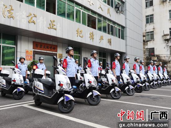 中新网广西新闻5月31日电(梁能瑜 宋威汉 李晓铭)为筑牢辖区治安防线,提升为民服务效能,广西藤县公安局近日举行“一村一辅警”警用车辆发放仪式,将57辆崭新的电动车发放到各基层派出所社区专职驻村辅警手中,为驻村辅警顺利开展各项公安工作提供更加强有力的保障。