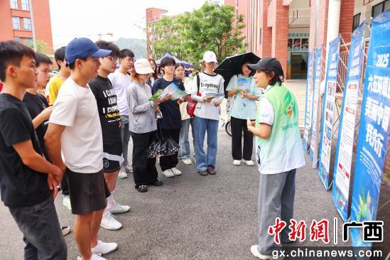 图为工作人员现场向师生宣传环保知识。潘志安 摄