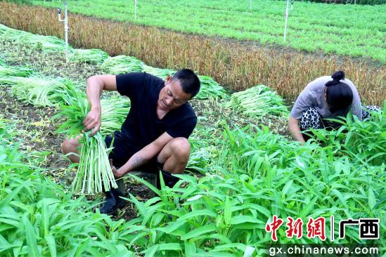 中新网广西新闻6月17日电(牙春柳 周梦玉)眼下,广西柳州市柳江区拉堡镇基隆村空心菜迎来丰收季,大量新鲜空心菜陆续上市,价格平稳,不仅为柳州螺蛳粉产业注入活力,更以多元吃法丰富大众餐桌。