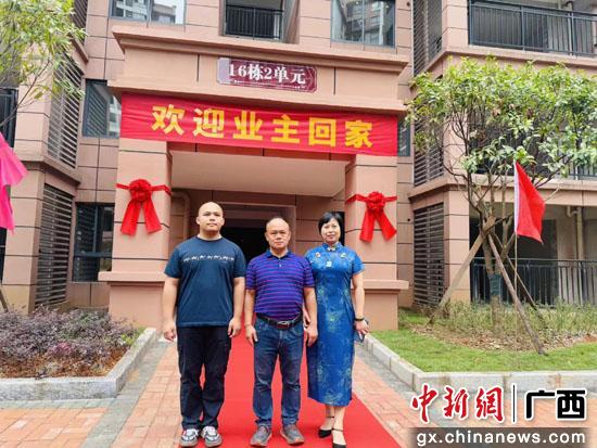 中新网广西新闻6月19日电(王亚东 周璇)“来,我们一家人在新房子前面照个相,马上可以搬家了。”6月17日,在广西桂林市七星区和平安置房二期16栋2单元交房仪式现场,和平李家里村2组村民李国辉接过新房钥匙时难掩喜悦地说。