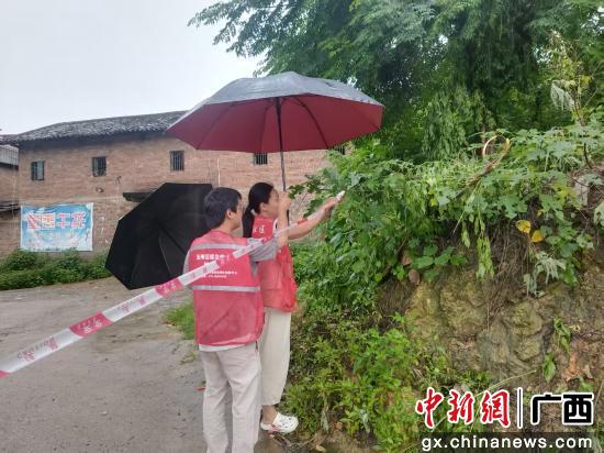 基层干部在危险区域拉上警戒线。玉州区融媒体中心供图