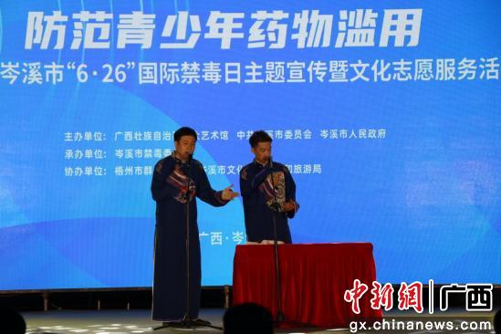 刘三姐文化志愿者表演相声《禁毒马站长》。主办方供图