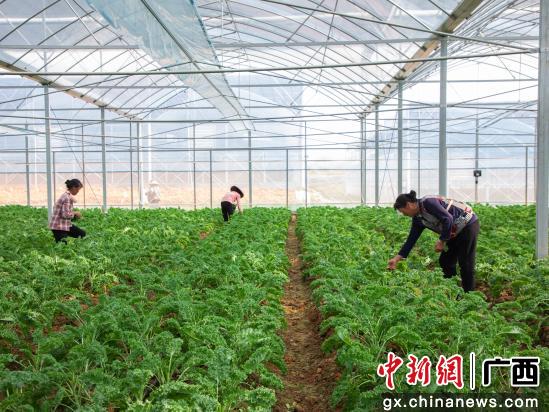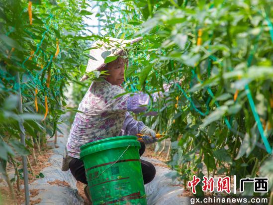 摘要提示:盛夏时节,金秀瑶族自治县桐木镇新三智慧农业产业基地内生机盎然。辣椒鲜亮饱满、羽衣甘蓝叶片层叠、豆角垂挂成行、黄瓜青翠鲜嫩,共同绘就了一幅斑斓的丰收图景。
