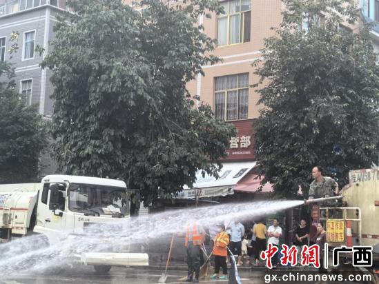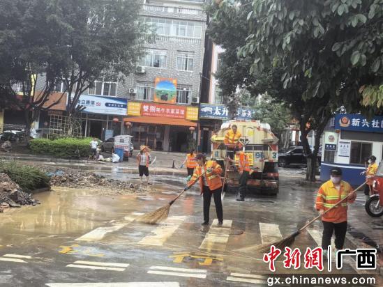 中新网广西新闻7月8日电(田仁民 王国英)7月1日凌晨,百色市隆林各族自治县突降暴雨,短时间内的强降水让城区多处路段积水严重,给群众出行带来极大不便。近日,隆林各族自治县城市管理监督局迅速组织180余人投入到紧张的雨后清淤工作中,在城区卫生责任区单位配合下,全力打造干净整洁的城区环境。