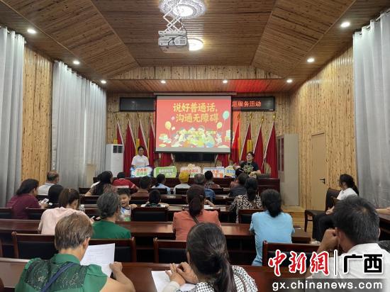 在龙胜各族自治县山东村,宣讲团以“说好普通话 沟通无障碍”为主题,用通俗易懂的方式向村民传递了学好用好标准通用语言普通话的重要意义和作用。实践队在讲座中通过“词语接龙”“情景对话模拟”等互动游戏,帮助村民纠正方言发音,同时向村民们普及了在日常生活场景中可能使用到的普通话发音规范,并带领村民们学习普通话标准音练习技巧。