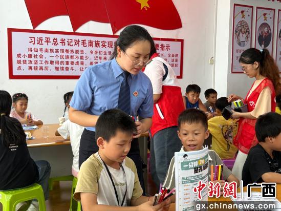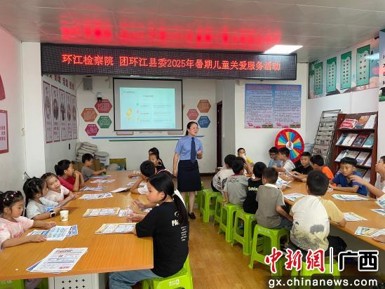 中新网广西新闻8月22日电 (韦琪)为全力守护辖区儿童度过一个安全、快乐、充实且有意义的暑假,近日,河池市环江检察院携手团环江县委、广西汉达社会工作服务中心走进城西安置区青空间开展2025年暑假儿童关爱服务活动。