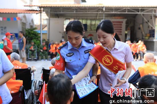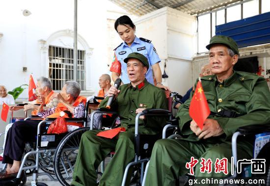 近日,在广西贺州市昭平县社会福利院,民警、爱心企业代表、银行网点员工与百余名老人齐聚一堂,认真聆听老兵深情讲述往昔峥嵘岁月,爱心捐赠、反诈护“钱袋子”的公益活动也同步开展。