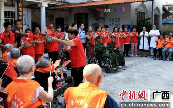 图为爱心人士与老人们齐唱《歌唱祖国》。甘勇 摄