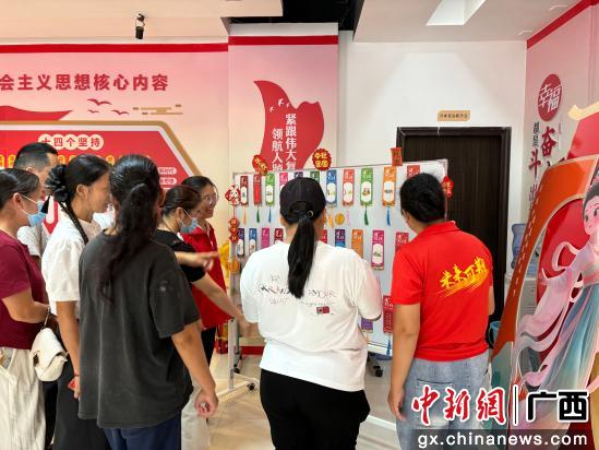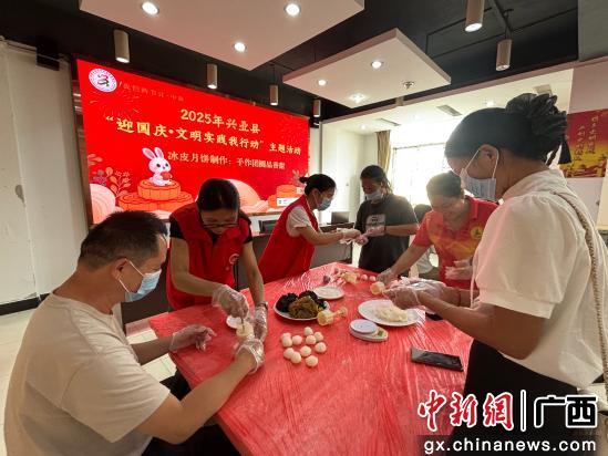中新网广西新闻10月1日电(李佰东)9月30日,广西玉林市兴业县新时代文明实践中心内欢声笑语不断,一场别开生面的“迎国庆·文明实践我行动”主题实践活动在这里举行。居民们通过制作月饼、猜灯谜等丰富多彩的活动,在浓浓的传统氛围中喜迎国庆中秋“双节”。