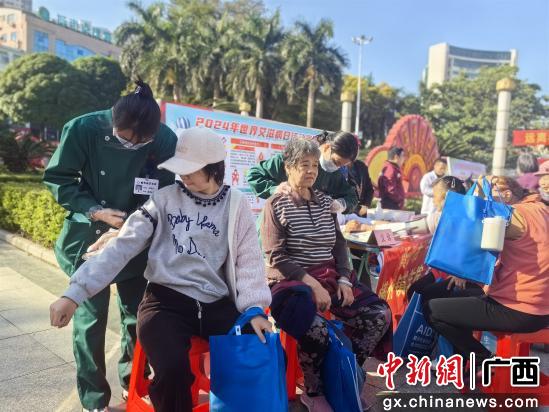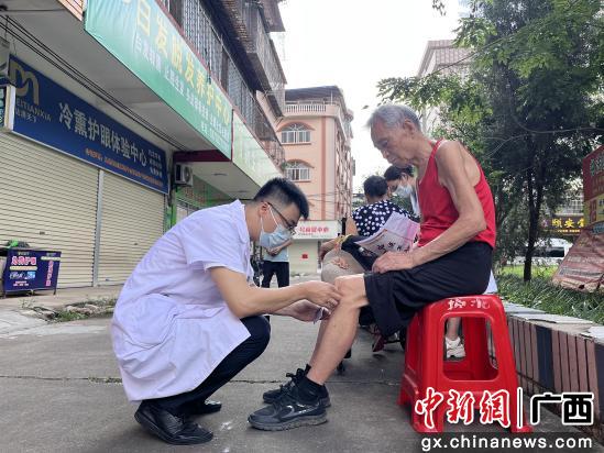 图为义诊活动中,群众体检康复手法。横州市委宣传部 供图