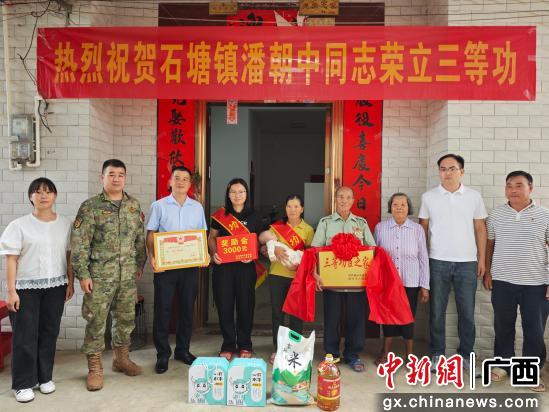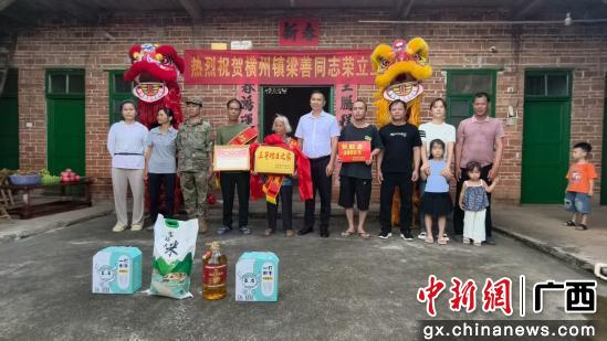 中新网广西新闻9月5日电 (孙燕妮)伴随着喜庆的锣鼓声,一份承载着荣誉与敬意的立功喜报,被郑重送到了军人家中。近日,为深入贯彻落实拥军优属政策,弘扬“尊崇军人、关爱军属”的良好风尚,横州市人武部联合市退役军人事务局、乡(镇)武装部、村委(社区)工作人员,组成专项送喜报队伍,为12名在部队荣立三等功的军人家庭上门送喜报、传荣誉,让军人荣光“看得见、摸得着、暖人心”。