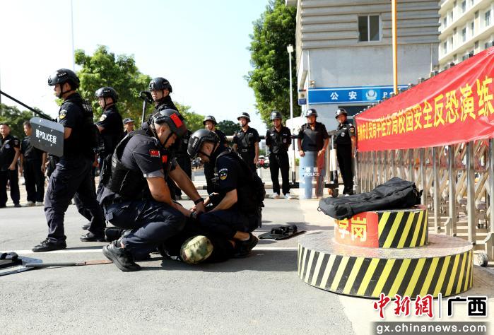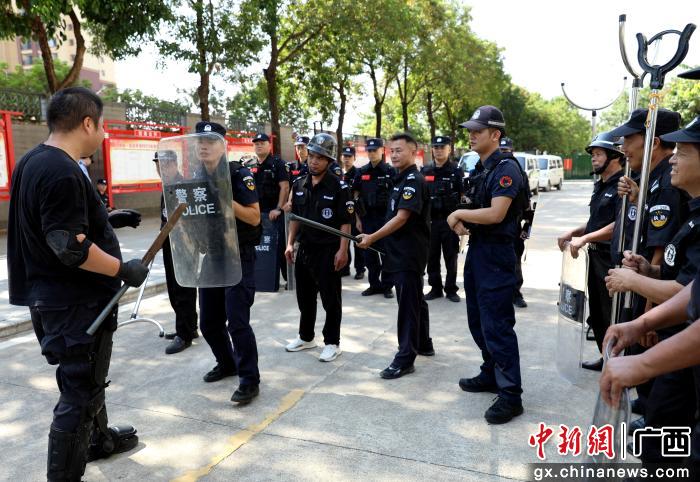 10月10日,广西贺州市公安局平桂分局反恐巡防大队联合鹅塘派出所,在贺州第一高级中学开展校园反恐防暴“送教上门”活动,通过防暴技能培训和反恐实战演练,进一步提升该片区校园中小学安保力量的应急处置与防范能力。
