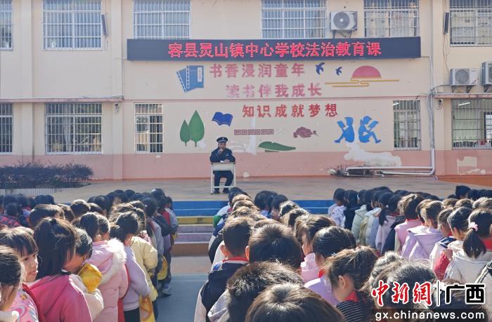 中新网广西新闻1月13日电(邓淼 黄优辉)“同学们,遇到校园霸凌应该怎么办?”“新修订的《治安管理处罚法》有哪些与我们生活密切相关的变化?”……日前,在广西玉林市容县灵山镇中心学校的大操场,一堂生动有趣的法治教育课在互动问答中拉开帷幕。