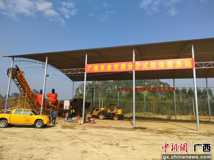 广俊甘蔗机械服务站于2025年12月初启动建设,主要为岜盆乡那标、那坡两个村21个自然屯的千余农户提供服务,覆盖3700亩蔗田,可完成约2.5万吨甘蔗的田间机械化采收、除杂分段等全流程作业。
