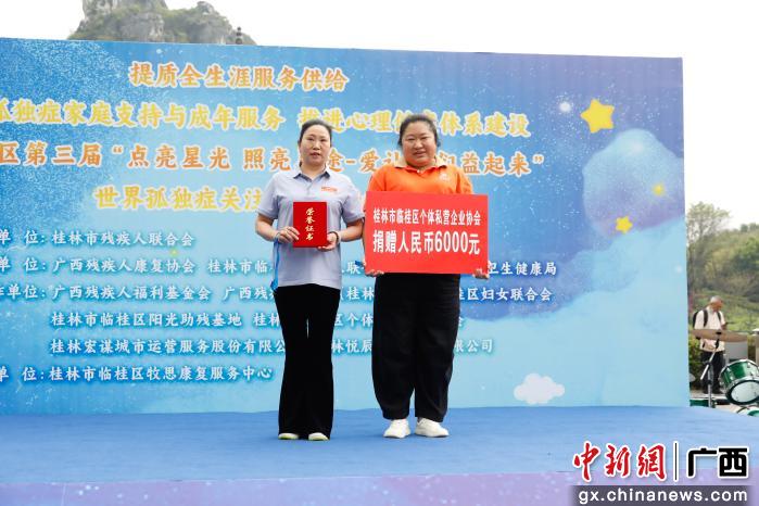 启动仪式上,精彩的文艺节目表演传递出对“星星的孩子”真挚的祝福与期盼。在捐赠环节,桂林市临桂区个体私营企业协会向牧思康复中心捐赠人民币6000元,专款用于孤独症儿童康复教育及家庭支持服务。