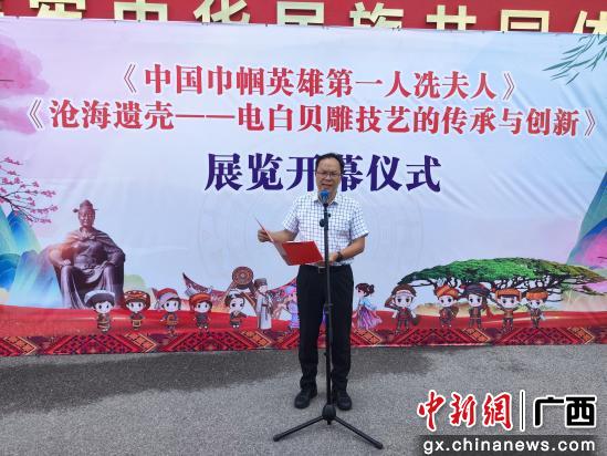 中新网广西新闻8月3日电(盘斌 张棕林 陈名扬)8月1日,《中国巾帼英雄第一人》与《沧海遗“壳”——电白贝雕技艺的传承与创新》主题展览,在广西来宾市金秀瑶族自治县瑶族博物馆开幕。