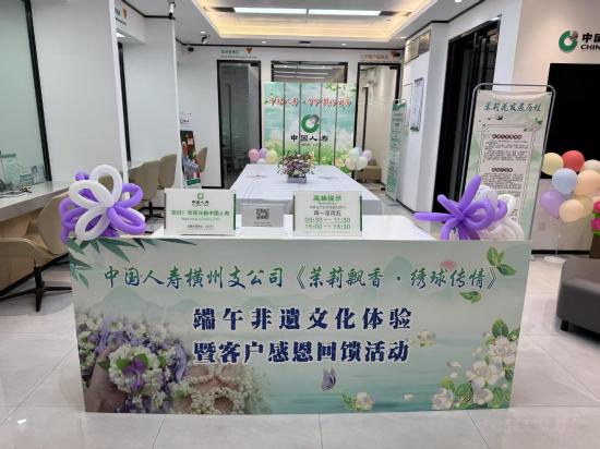 在端午即将来临之际,中国人寿横州支公司结合当地茉莉花之乡的地域文化特色,在支公司客服大厅举办了“茉莉飘香绣球传情”端午非遗体验活动。