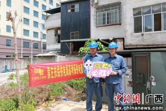 崇左扶绥供电局保供电人员在值守点为高考学子加油。梁思婷 摄