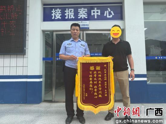 中新网广西新闻6月18日电(陈月娜)6月16日,袁先生将一面锦旗送到广西凭祥市公安局城区派出所值班室,表达对民警成功调解车辆检修引发矛盾纠纷的感谢。
