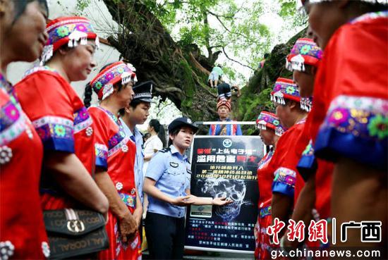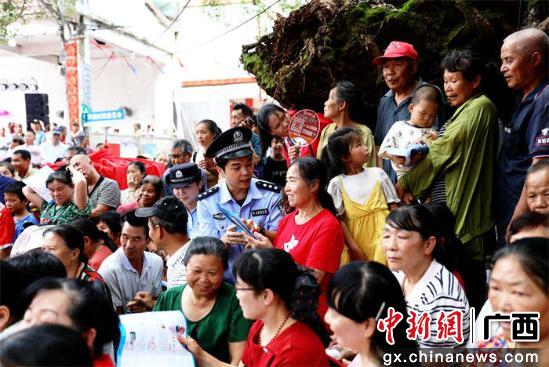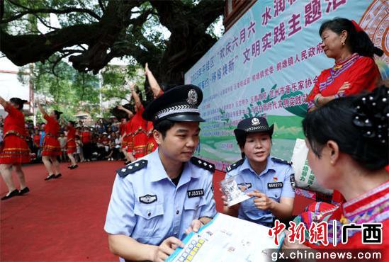 6月30日,广西贺州市平桂区鹅塘镇芦岗村“六月六”民俗活动热闹上演。贺州市公安局平桂分局民警辅警化身“安全讲师”,穿梭人群普及禁毒、反诈知识,进一步提升大家安全防范意识,助力民众安全度夏。