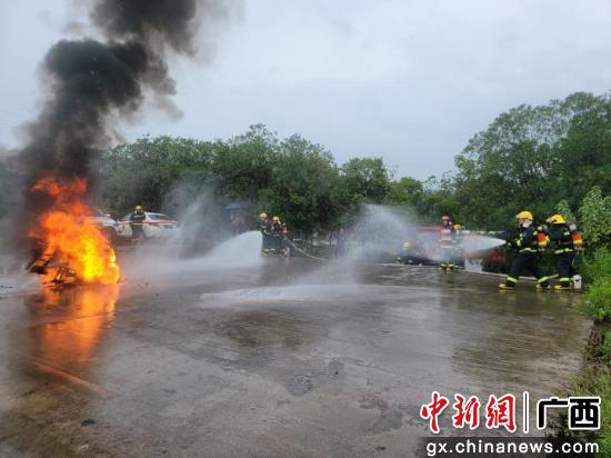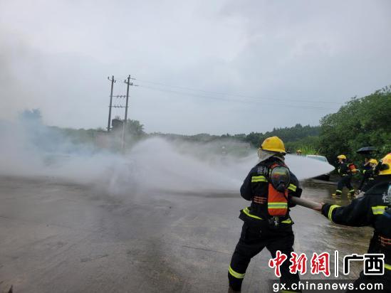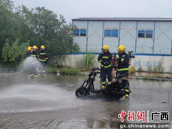 桂林机场消防组织开展电动自行车着火应急演练
