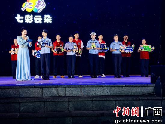 中新网广西新闻8月15日电(刘春妮)将法治知识融入“城市烟火气”,为老百姓送上“平安课”……8月13日晚,荔浦市公安局民辅警走进暑假文艺汇报演出现场,借助舞台聚人气、接地气的优势,将反诈、交通、禁毒等知识送到群众身边。