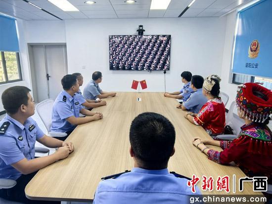 9月3日,桂林市灌阳县民众与民警共同观看纪念中国人民抗日战争暨世界反法西斯战争胜利80周年阅兵式。活动现场,各族民众身着民族服饰,与民警一同观看电视直播,不时响起热烈掌声。